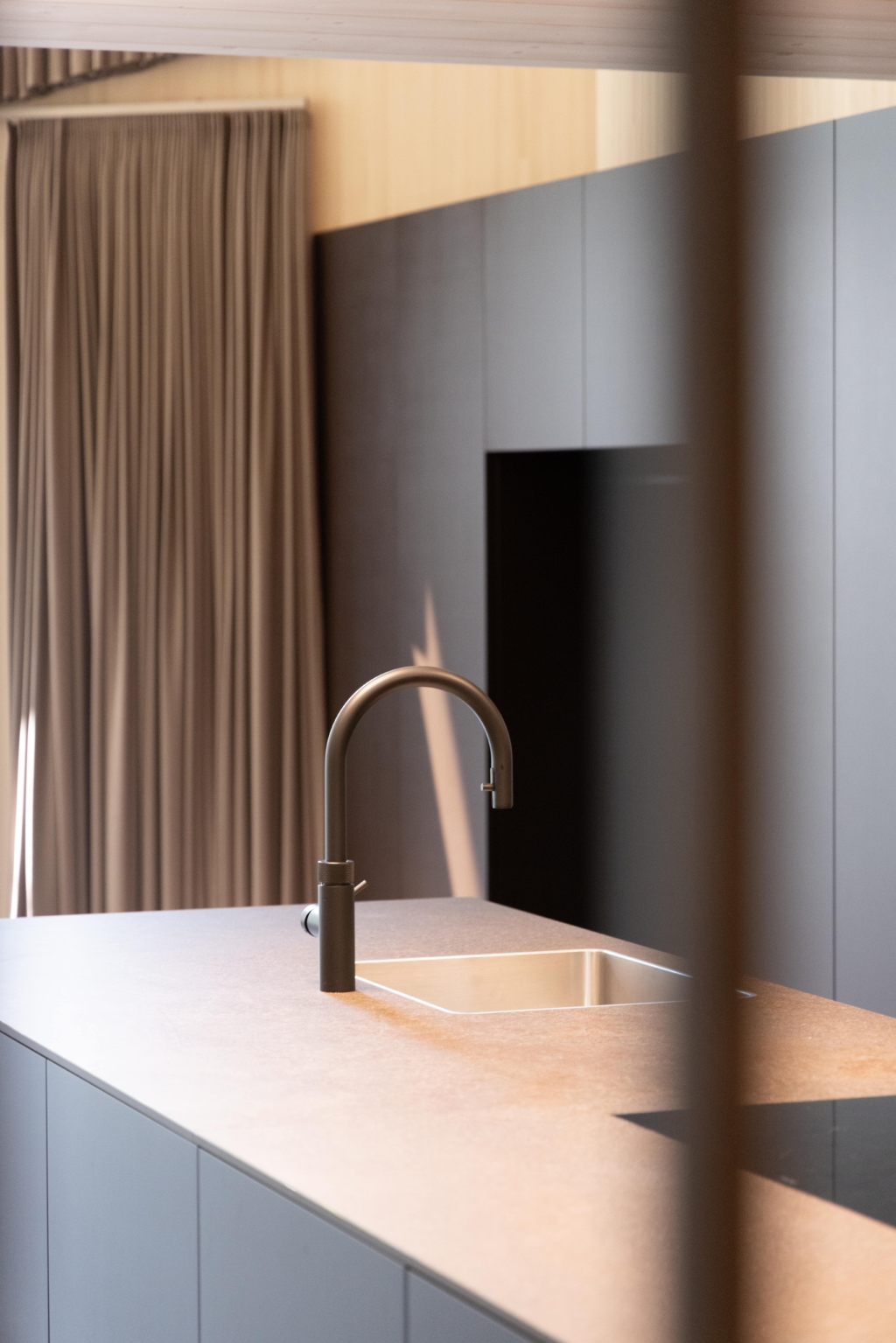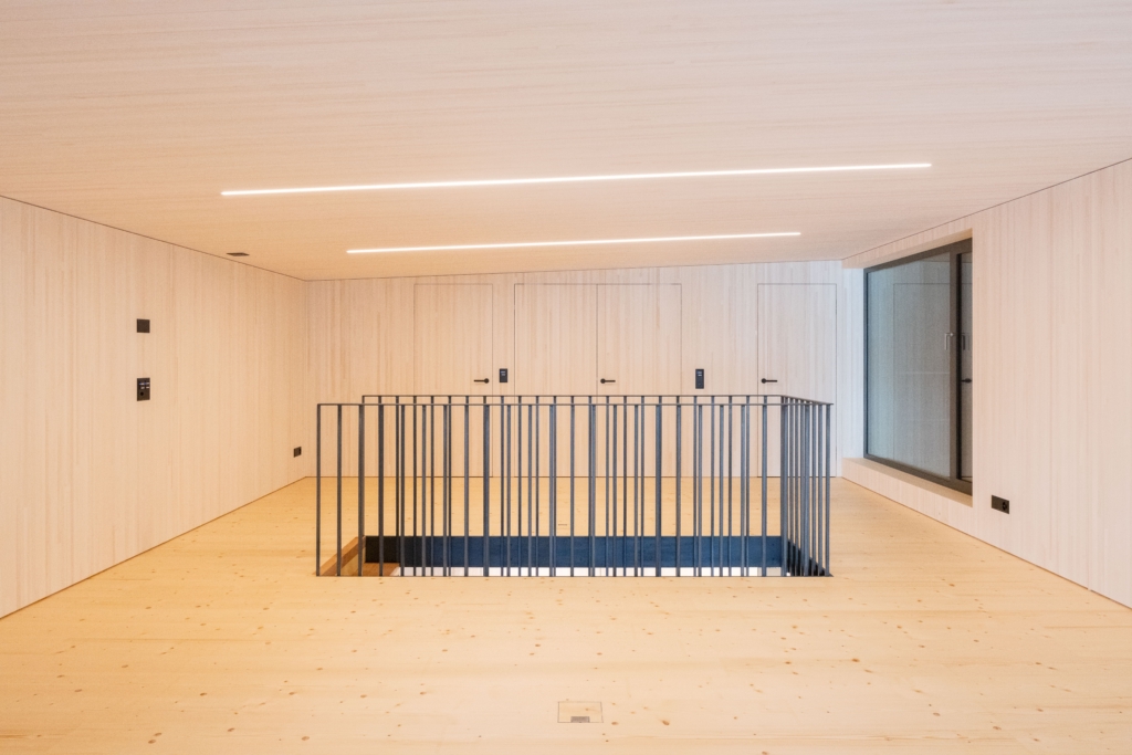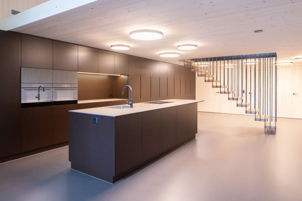 Über die freistehende Treppe gelangt man ins Obergeschoss, wo sich Schlaf- und Arbeitsbereich sowie eine offene Galerie befinden. Ein separates WC, eine abgetrennte Badewanne und eine separate Dusche sind stilvoll hinter Blockholzplatten integriert und fügen sich harmonisch in die Architektur der Wohnung ein. Vor der Atelierwohnung lädt ein privater Sitzplatz an der Seepromenade von Brunnen zum Verweilen ein. Zur Wohnung gehören zwei Parkplätze in der Tiefgarage.