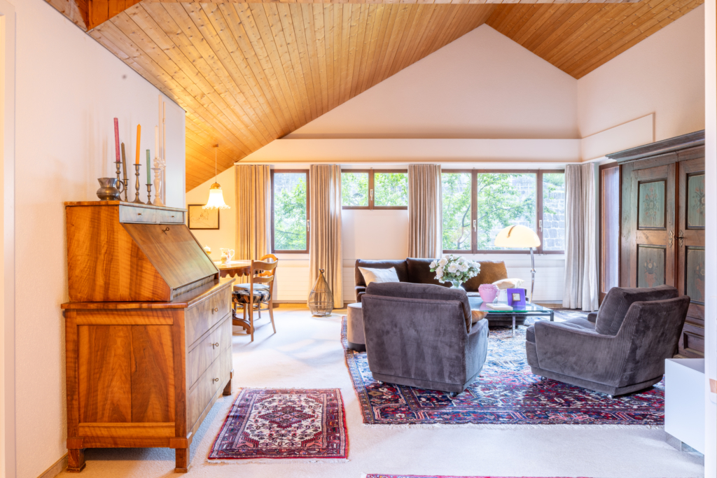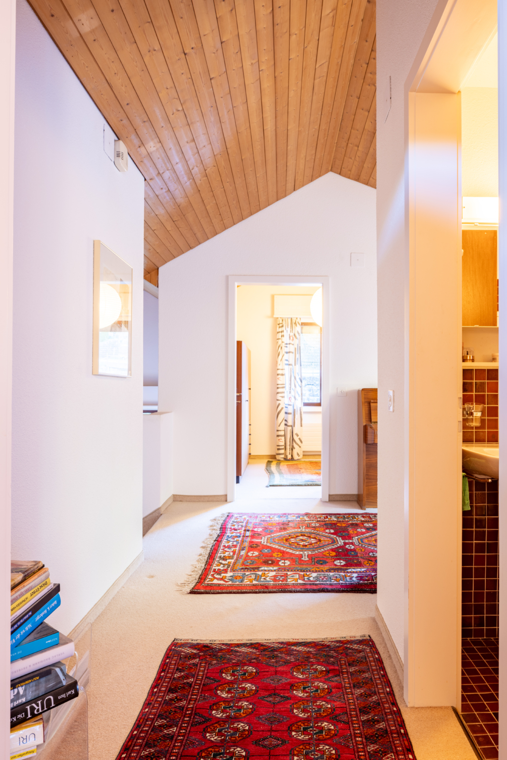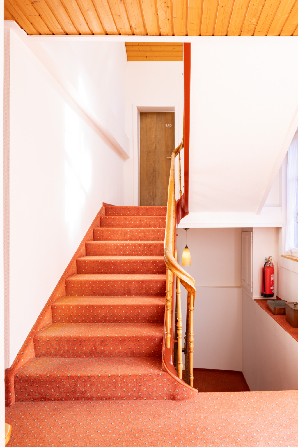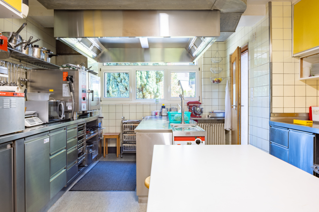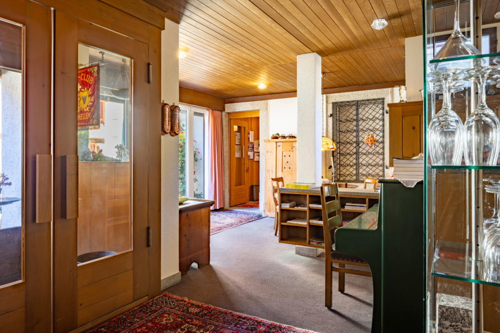 Das Wohnhaus (ca. 1’670 m³) erstreckt sich über vier Stockwerke und überzeugt durch seine flexible Raumaufteilung. Im 2. Obergeschoss und Dachgeschoss befindet sich eine 4.5-Zimmer-Maisonette-Ferienwohnung, im Obergeschoss eine 4.5-Zimmer-Wirtenwohnung. Ergänzt wird das Raumangebot durch zwei Hotelzimmer mit Bad sowie ein Sitzungszimmer für etwa 12 Personen. Über die Gartenterrasse mit rund 12 Sitzplätzen gelangt man zum Empfangsbereich. Ein Vorbereitungsraum mit Waschmöglichkeit, eine Doppelgarage und der Aussenbereich runden das Wohnhaus ab.